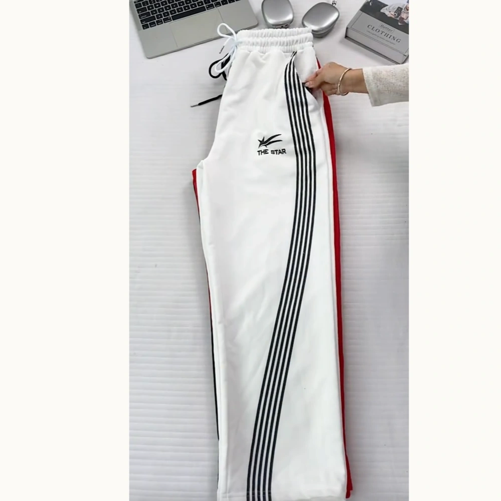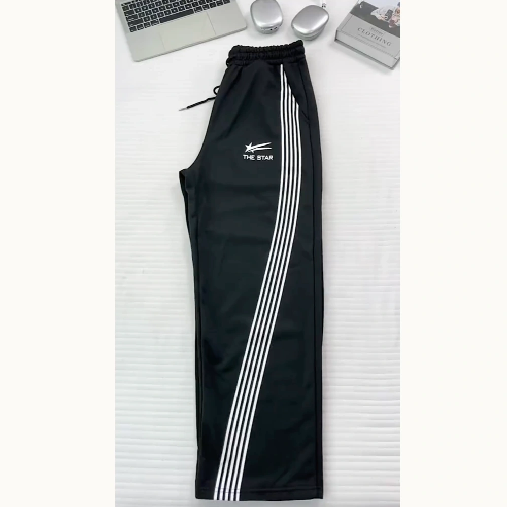 Designed with a baggy, wide-leg fit and an open bottom (straight leg), offering a loose and comfortable feel.